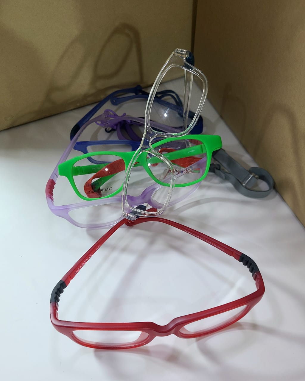 Kids Flex Glasses are made from soft, flexible, and BPA-free plastic designed for babies from months old up to age 10. Their one-piece, hinge-free design with no metal parts makes them lightweight, hypoallergenic, and super safe for energetic little explorers. The anatomically contoured bridge rests gently on the nose, providing all-day comfort without pressure points or nose pads. Built to last with impact-resistant material, these glasses come in various sizes, styles, and bright colors, perfectly matching every child's unique personality and prescription needs—even high-prism corrections up to ±28.